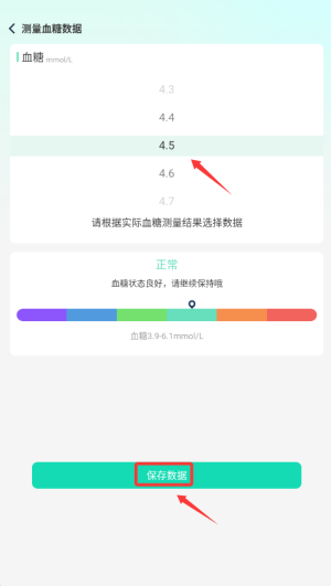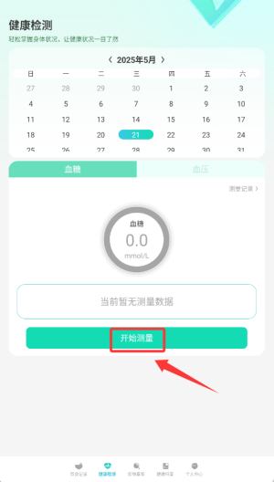 2、点击"开始检测"按钮,进入血糖数值录入界面。
