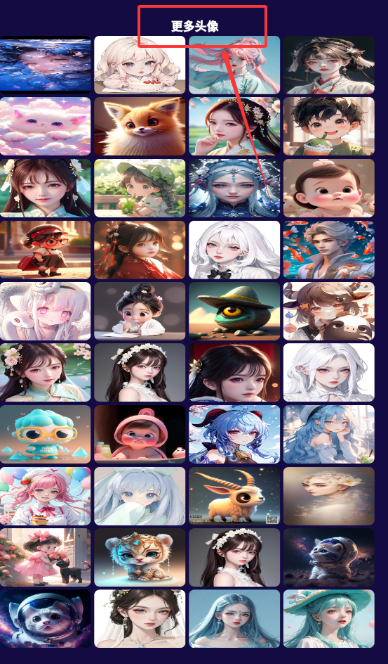 2、在更多头像内,可以往下翻阅更多头像,点击选择喜欢的头像即可。