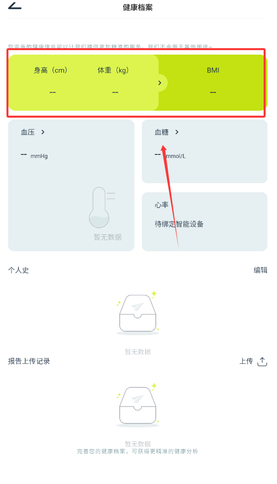 2、健康档案内填写身高,体重,等等情况,可以按照身体状态制定计划。