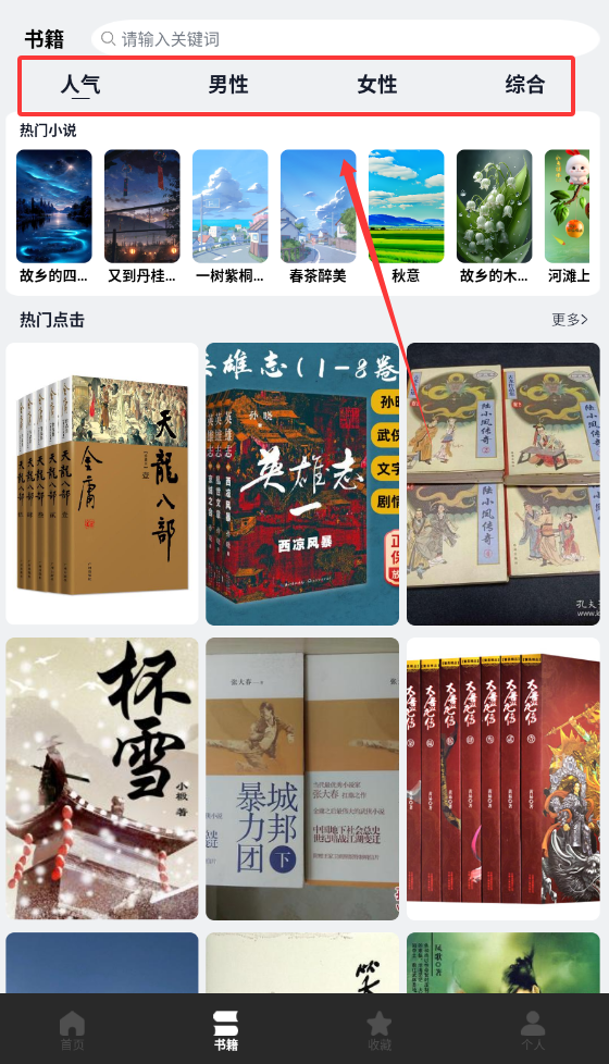 2、点击书籍,按照选项选择种类,点击进入,翻阅书籍,点击即可。