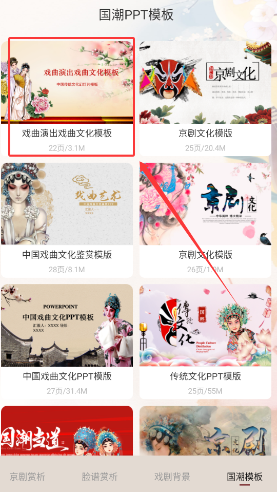4、内置素材库提供经过专业设计的戏曲元素模板,包括演示文稿、宣传海报等各类办公素材,可直接编辑使用。