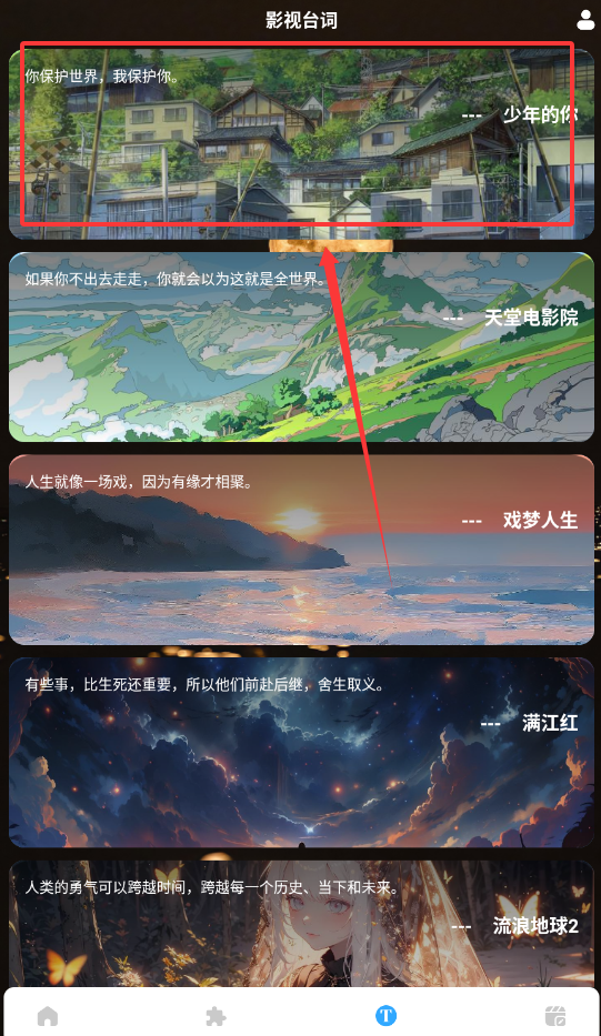 3、在影视剧中,有很多经典台词,这里可以全部查询到,复制即可。