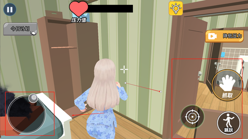 2、左侧是控制移动的虚拟摇杆,右侧设置互动按钮,用于执行开门上厕所换装进食等操作,界面简洁功能明确。