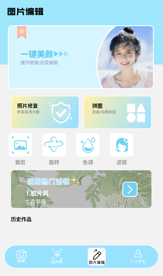 3、提供多功能图片处理,包括智能美颜、瑕疵修复、多图拼接等实用编辑选项。