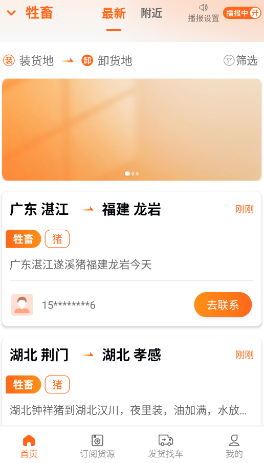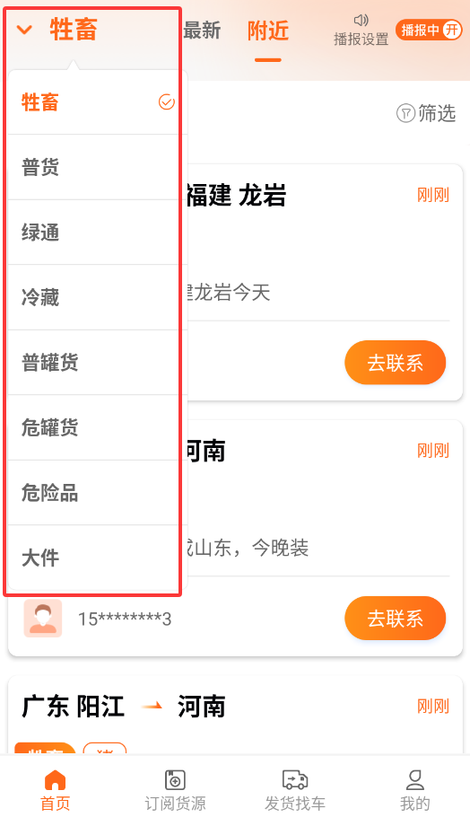 2、开启定位功能后,可优先查看周边最近的货运车辆及司机接单情况。