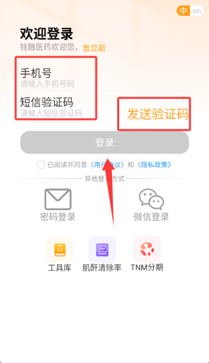 1、打开应用后直接输入手机号获取验证码,填写后就能快速登录系统开始使用。
