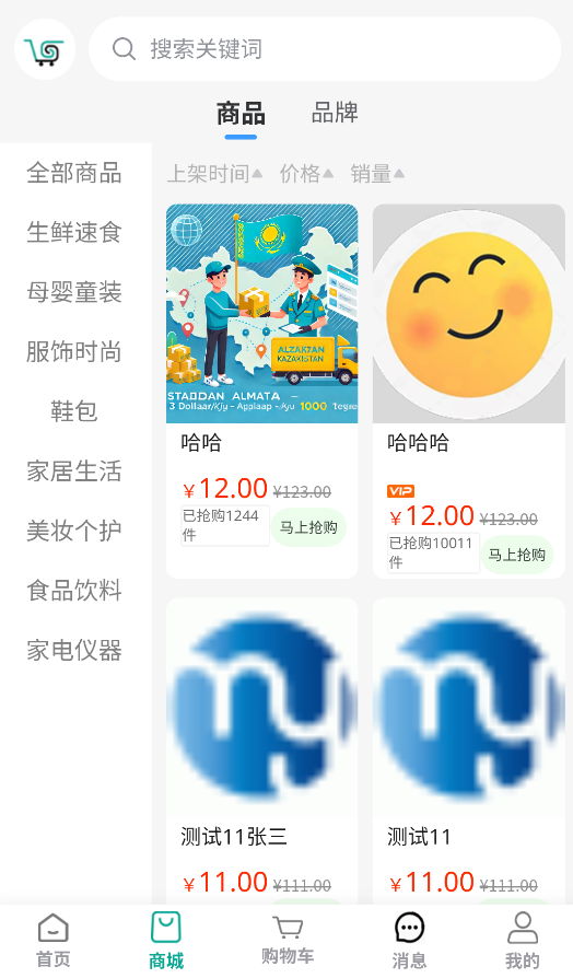 2、点击底部"商城"入口可浏览全平台商品,支持按分类、价格等条件筛选。