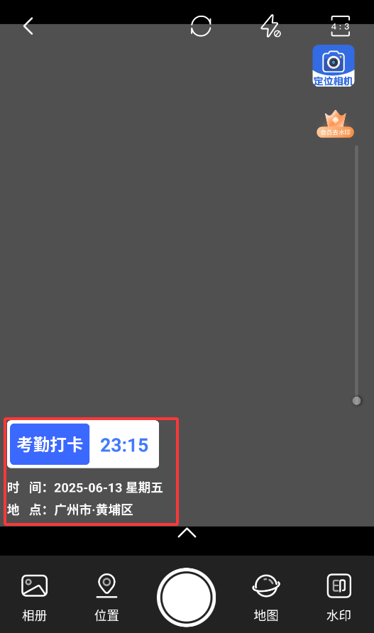 3、拍摄后照片会自动添加包含地理位置和拍摄时间的专属水印,可在左下角查看。