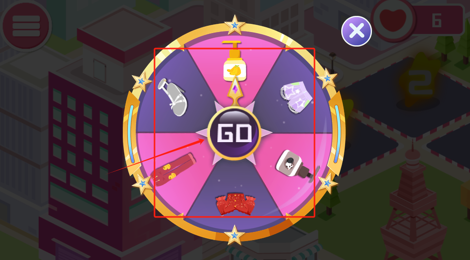 2、点紫色圆圈里的GO按钮,选六个图标中的一个玩。