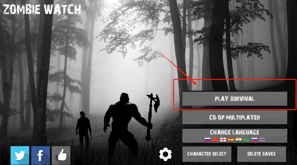1、点PLAY SURVIVAL开始生存模式,右下角可以设置语言或删除存档。