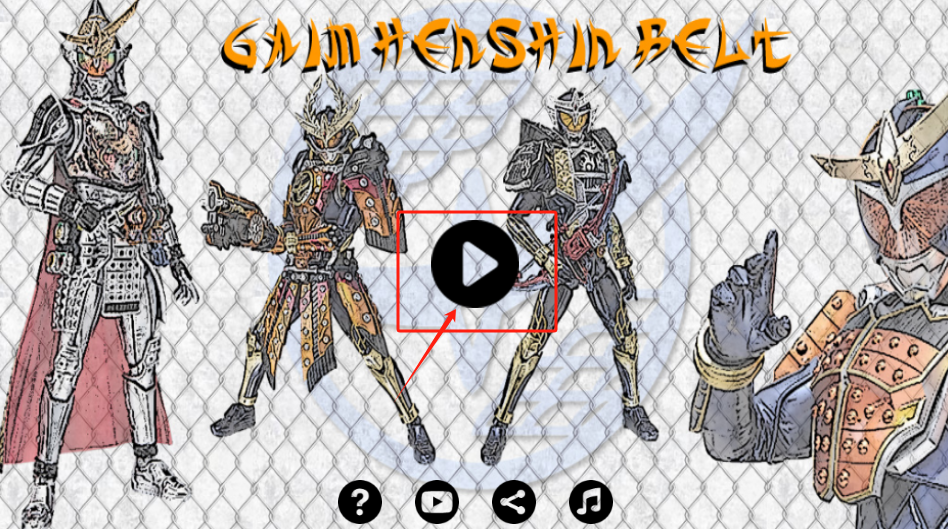 1、点中间红框里的播放按钮开始游戏,四个假面骑士等着你选,下面有其他功能图标。