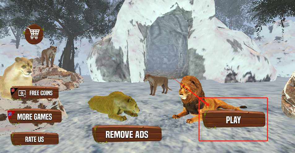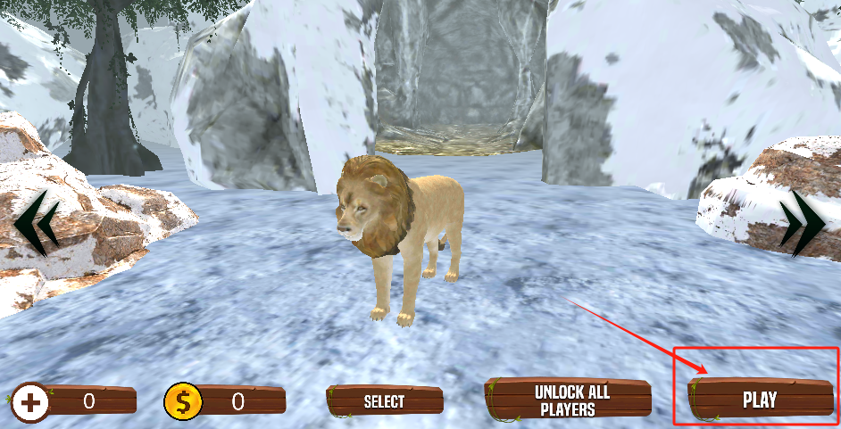 1、点击右下角红框里的PLAY按钮,开始你的狮子模拟冒险游戏。