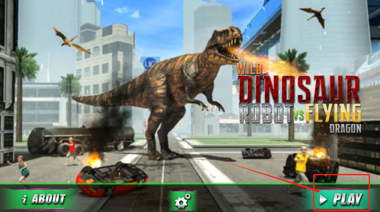 3、用左下角方向键移动机甲,按右下角SHOOT射击恐龙,注意血量和时间。