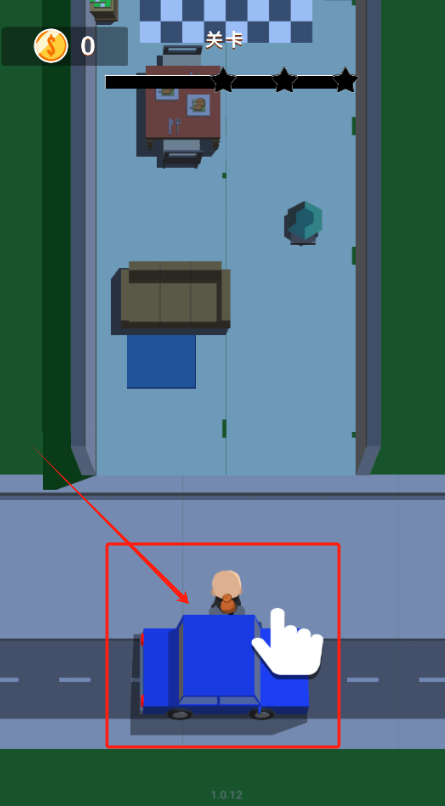 2、点红圈里的蓝色小货车偷东西,注意看上面金币数和关卡进度条。