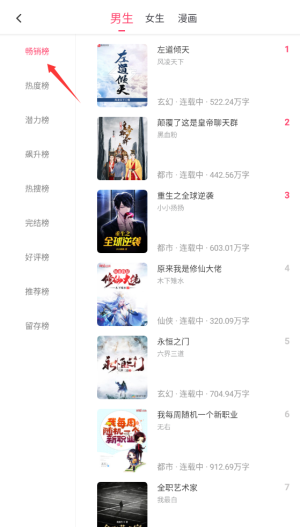 1、进入小小追书漫画APP后,在首页导航栏选择"畅销榜单"栏目,这里展示当前最受欢迎的小说作品。