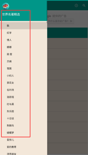 1、启动世界名著精选APP后,点击左上角的目录图标,展开完整的书籍分类列表。