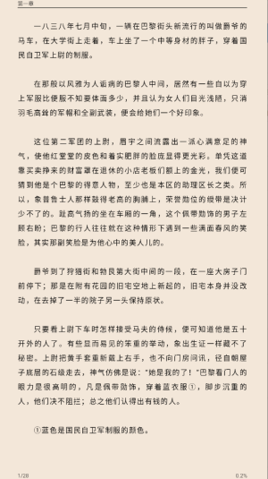 3、点击书籍封面后,系统将自动跳转至阅读界面,支持多种字体和背景设置。