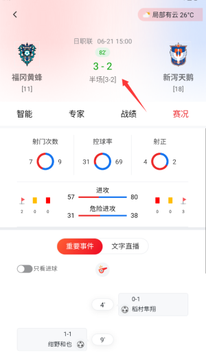 2、在比赛详情页查看实时数据和技术统计,重要事件会推送即时通知。支持多场比赛同时追踪。