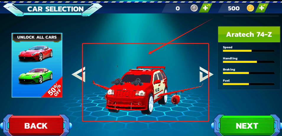 3、挑选红色赛车Aratech 74-Z,按NEXT进入比赛。