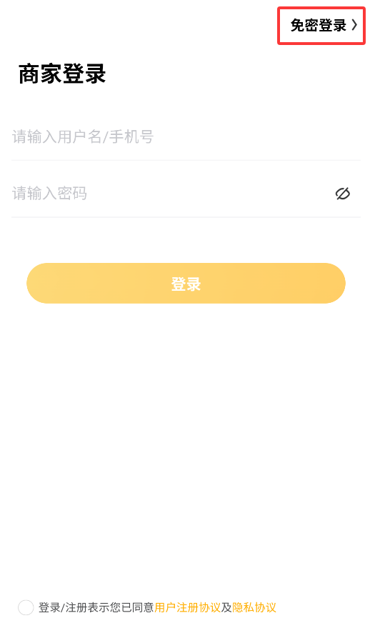 1、启动APP后,在登录页面点击“免密登录”选项,进入安全验证流程。