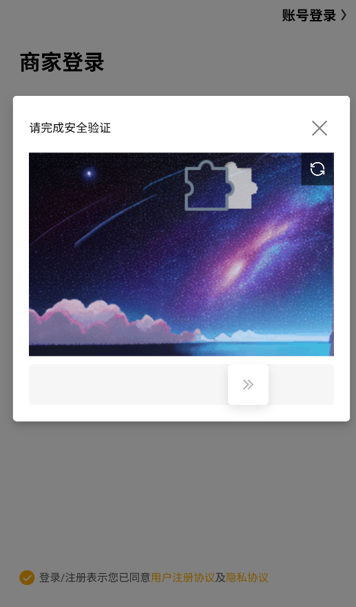 3、完成拼图验证后,自动发送短信验证码,输入即可直接登录商家后台(无需密码)。