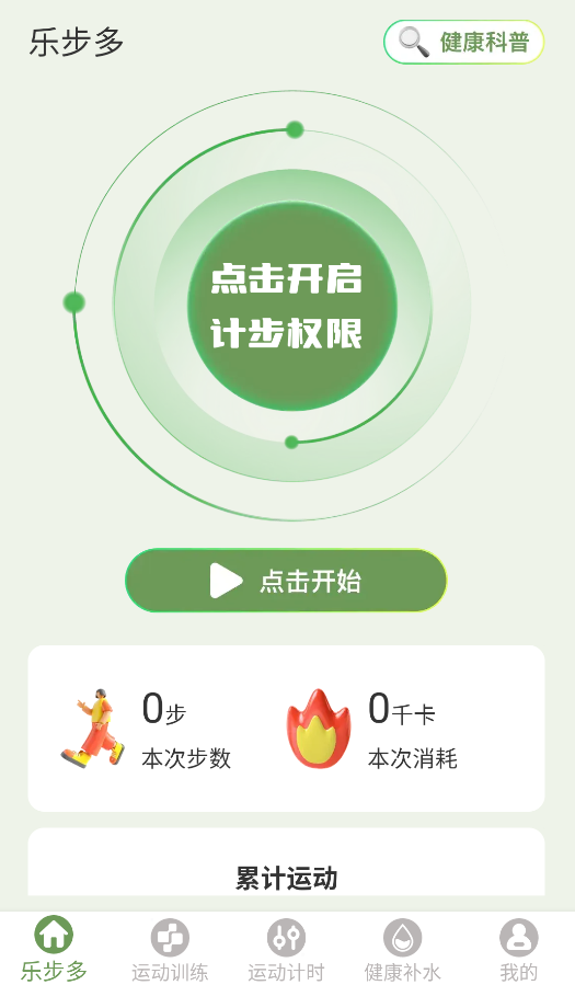 1、启动APP后,点击首页“开始计步”按钮,实时记录步数并换算卡路里消耗(支持历史数据对比)。