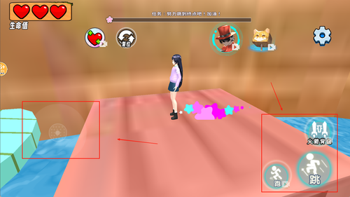 2、左侧是控制移动的方向按钮,右侧设有跳跃、滑行和特技动作键,合理搭配操作才能顺利完成关卡。