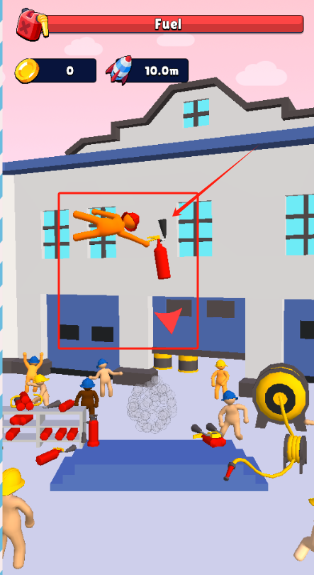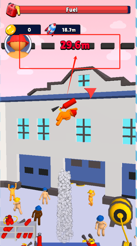 2、控制飞着的小人灭火,注意看燃料条别掉下来,还能捡金币。