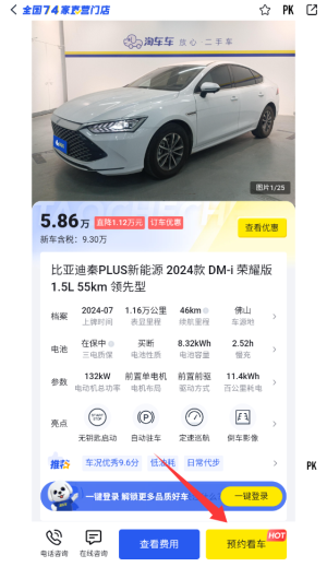3、确认意向车辆后,点击右下角"预约看车"按钮即可联系卖家安排实地验车。
