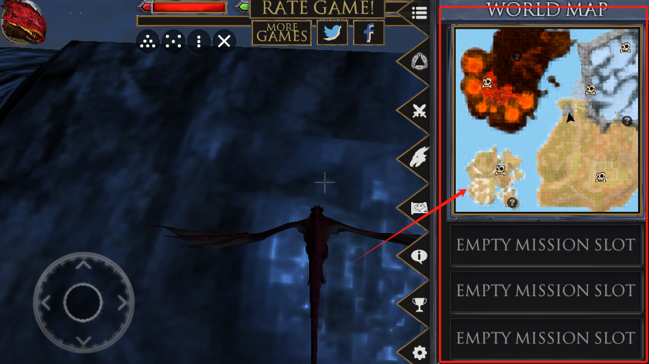 3、打开世界地图选任务,三个空槽等你去探险,操控飞龙出发吧。