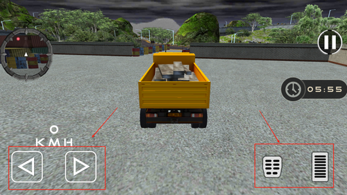 2、左侧控制方向与速度,右侧则是操作机械臂与装载按钮,界面清晰便于快速应对各种施工需求。