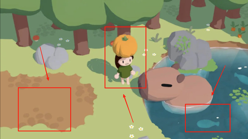2、滑动左侧是移动控制,右侧则是互动与确认选项,界面简洁便于随时查看作物状态或使用道具加速生长。