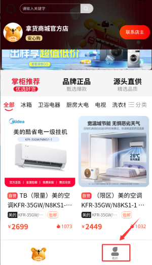 1、进入拿货商城APP后,点击底部导航栏"我的"选项,进入个人中心页面。