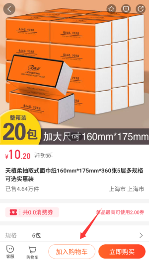 3、确认商品后点击左下角"加入购物车"按钮,即可将商品暂存待结算。