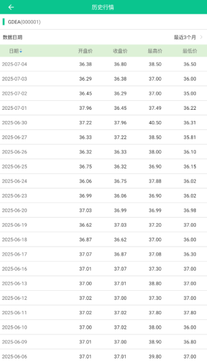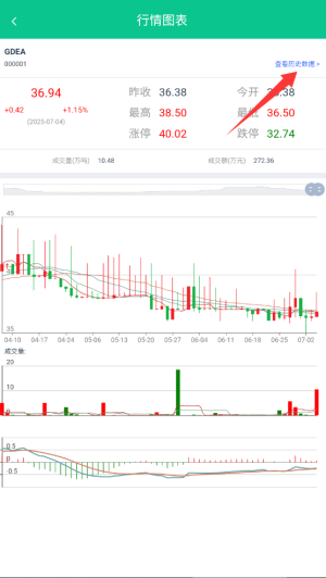 2、点击页面左上角"历史数据"选项,切换至历史行情查询界面。