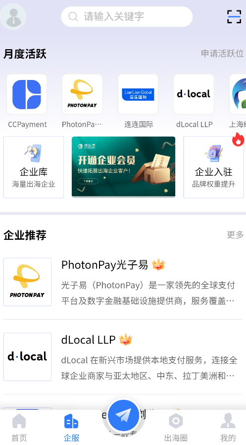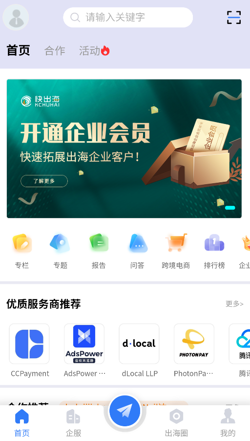 快出海这个跨境电商软件挺实用的。主要是帮企业找海外合作资源,里面供应商和渠道信息挺全的。还能参加行业活动,了解最新趋势。做外贸生意的用这个软件挺方便的,找合作伙伴省事不少,快点下载一个试试吧。