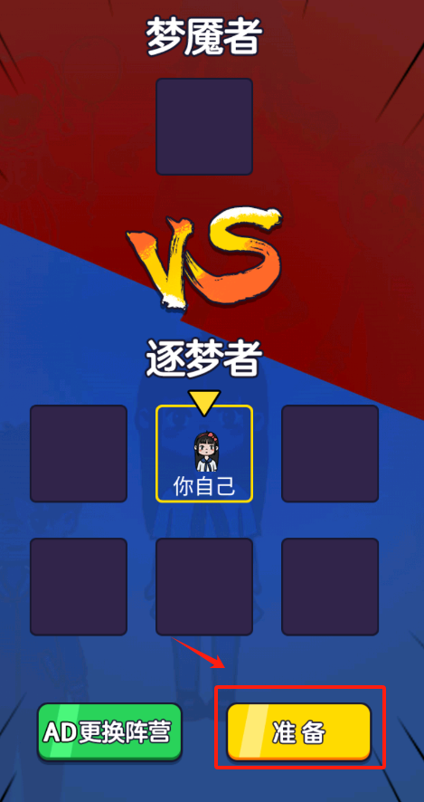 2、看到下方黄底准备按钮,用手指点它确认阵营,就能进入梦魇者与逐梦者的对战模式哟。