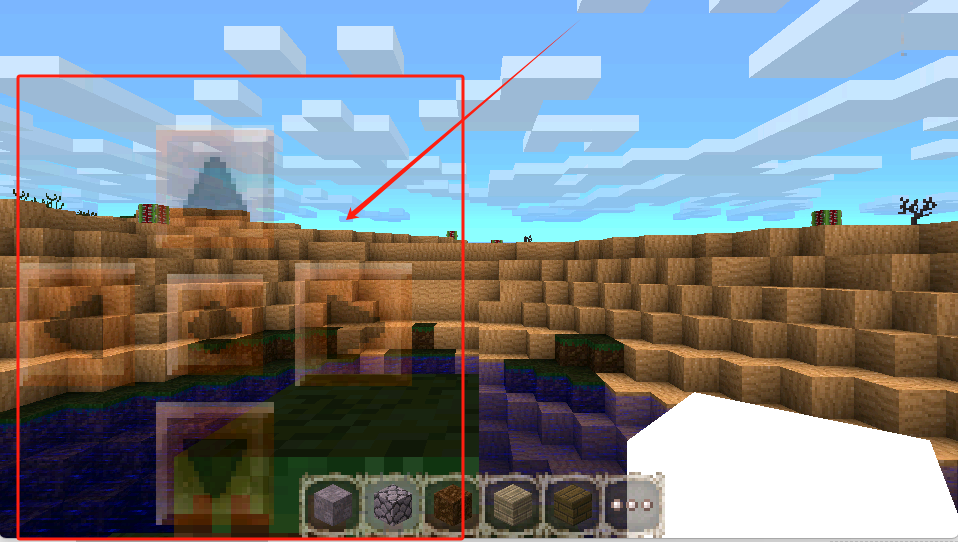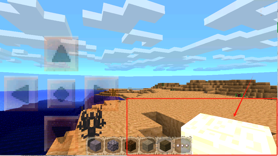 2、用红框里的工具挖方块,箭头指的地方可以开始建造。