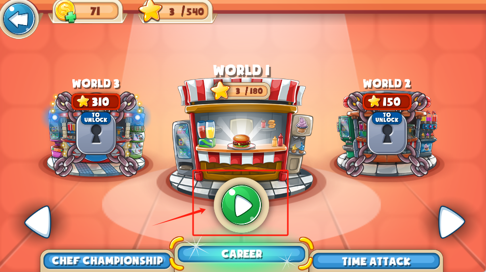 2、点击橙色界面中的播放按钮进入关卡,积累星星解锁更多世界地图。
