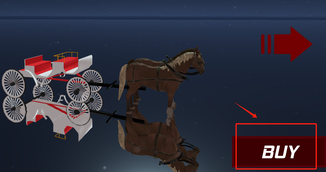 2、看到右侧红色BUY按钮,点它就能购买这匹棕色带鬃毛的拉车马,解锁新坐骑哟。