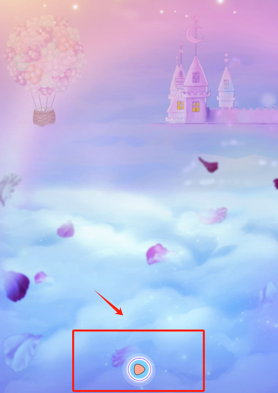 1、看到粉紫天空和红框心形图标,用手指点这个心形,就能开启梦幻场景的互动或换装功能啦。