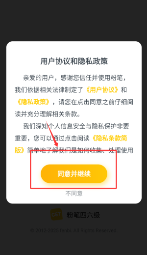 1、阅读并确认用户协议后即可进入应用主界面开启备考功能。