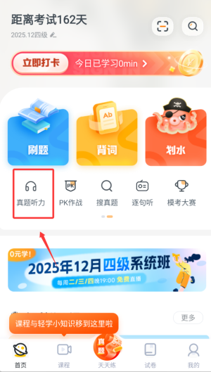 2、真题数据库完整收录近六年四六级考试原题,每道题目均配备视频解析与知识点延伸讲解。