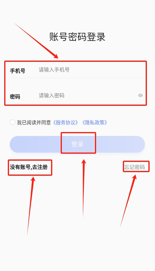 1、打开软件进入登录页面,输入已注册的手机号和密码后点击登录按钮即可进入主界面。