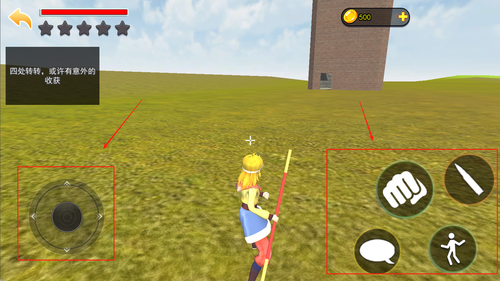 2、左侧是移动方向控制,右侧是攻击与跳跃按钮,界面下方显示当前技能与道具使用情况。