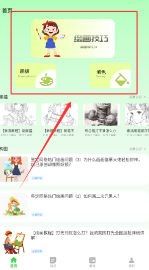 1、专为艺术和人文学习设计的平台,主打绘画和诗词两大方向。
