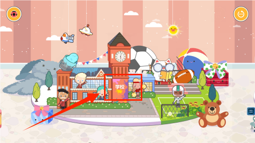 2、在主场景中找到红色教学楼的入口标志,轻触后就能切换到教室内部视角。