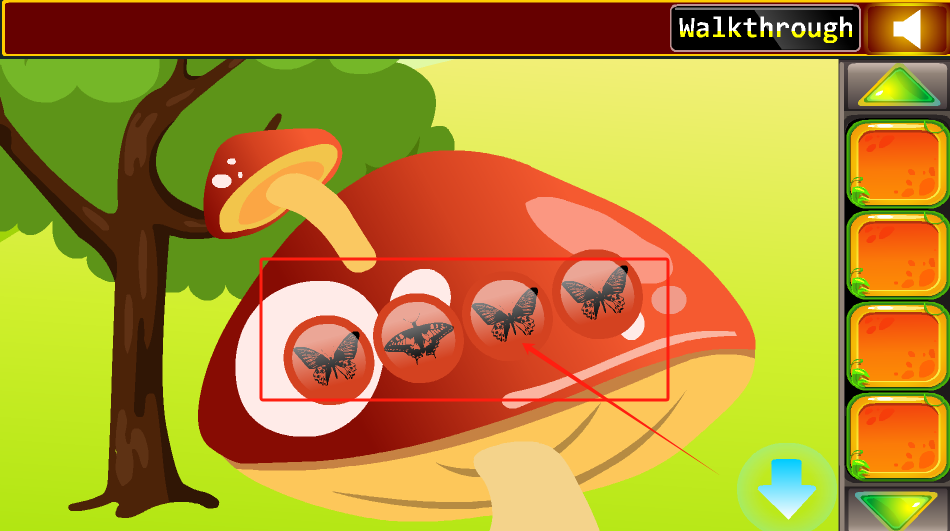 2、用手指点红框里的彩色蘑菇,收集隐藏道具帮助鹅鸟逃跑。
