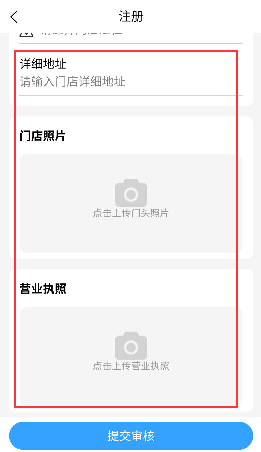 3、最后上传门店实景照片和营业执照,提交后等待平台审核通过即可正式开通商家账号。