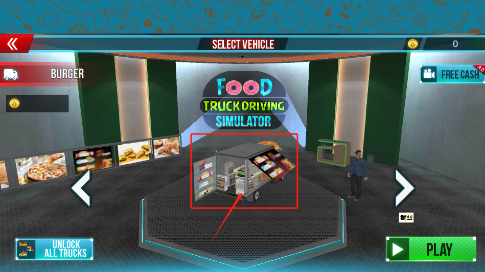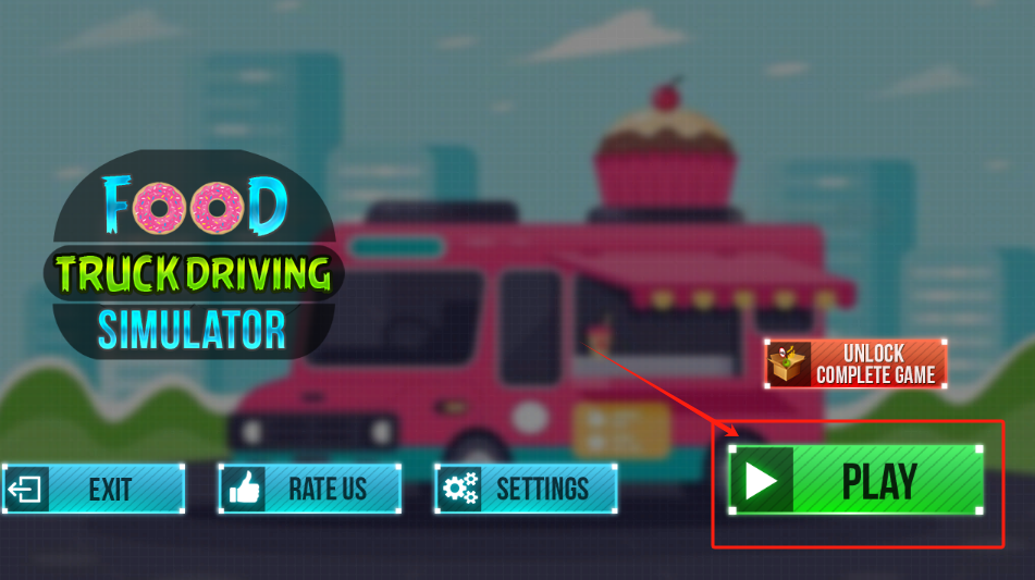 1、点击右下角绿色PLAY大按钮,进入美食餐车驾驶模拟器开始游戏。